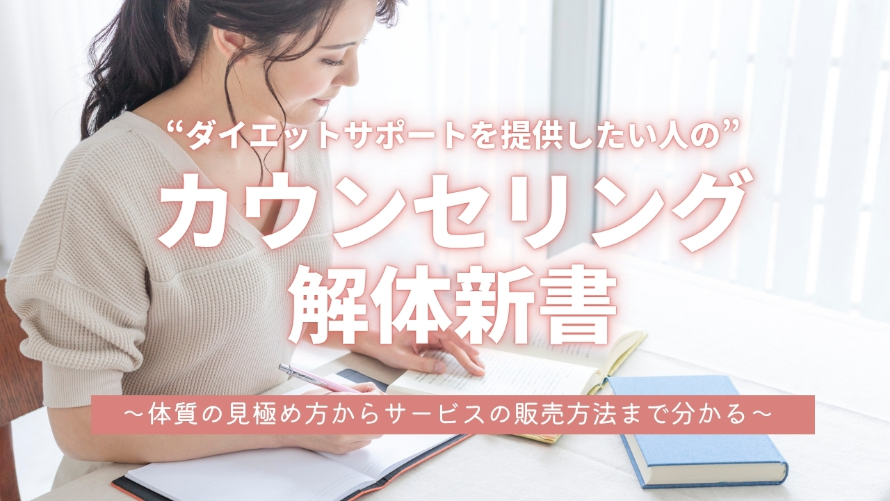 カウンセリングの要点がまとめてある冊子で、これがあれば、痩せない。。と悩んでいる人のサポートができるようになります。